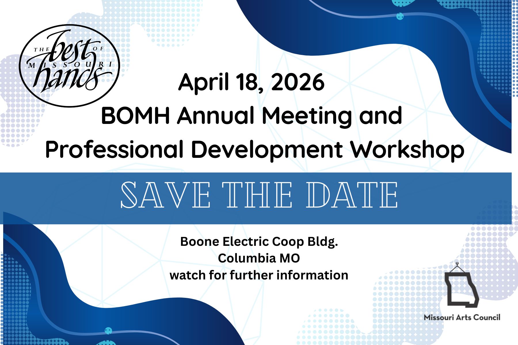 Missouri Artisans Association d.b.a. The Best of Missouri Hands (BOMH) is a state wide non profit (501c3) organization. We are dedicated to the development and recognition of Missouri’s arts and artisans through education, interaction, and encouragement.
