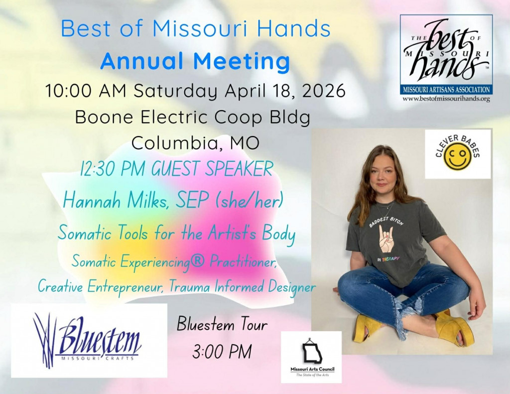 Many BOMH artists are represented by Bluestem Fine Crafts in Downtown Columbia. You may also know that on January 1, 2026, the gallery changed hands. It just so happens that Bluestem is hosting an Open House on April 18 from 3-6 pm. How convenient is that? BOMH is looking at arranging transportation for Annual Meeting attendees to travel to Bluestem for their open house and meet the new owners. This is an ideal opportunity not only for those who are currently represented by Bluestem, but by those who may be interested in having their art in the store in the future to introduce yourself to the new owners. Further information will be provided as developed. Watch this space.